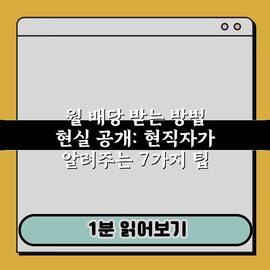 Q. 월 배당 받는 방법 현실 공개, 소액으로도 시작 가능한가요?