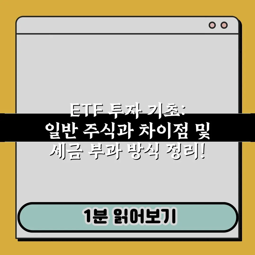 최근 투자 시장의 변동성이 커지면서 안정적인 수익을 추구하는 분들이 늘고 있어요. 하지만 일반 주식과 다른 ETF에 대해 막연한 궁금증을 가지고 있거나, 복잡한 세금 문제 때문에 투자를 망설이는 경우가 적지 않습니다. 과연 ETF는 일반 주식과 어떤 차이가 있고, 세금은 어떻게 계산될까요? 이 글에서는 **ETF 투자 기초: 일반 주식과 차이점 및 세금 부과 방식 정리**를 통해 여러분의 고민을 시원하게 해결해 드릴게요.
